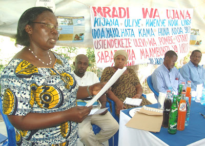 KATIBU Mtendaji wa Shirika la Waugunzi na wakunga wa kujitegemea Tanzania (PRINMAT), Keziah Kapesa akitoa taarifa ya utekelezaji wa mradi wa kuleimisha dhidiu ya Ukimwi, vijana waliomo katika ndoa, katika sherehe iliyofanyika kwenye kituo hicho kilichopo Goba, wilaya ya Kinondoni, Dar es Salaam, juz