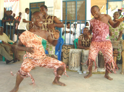 WASANII wa kundi la vijana wa kituo cha elimu ya ukimwi kwavijana walio katika ndoa, kilichopo chini ya PRINMAT cha Goba wilayani Kinondoni, Dar es salaam, wakicheza sindimba wakati wa sherehe hiyo.